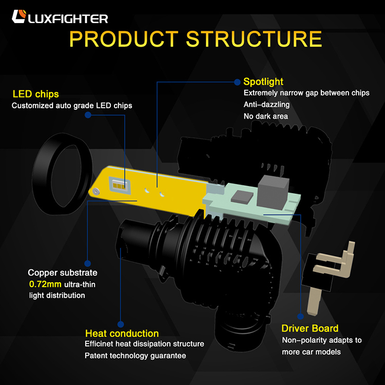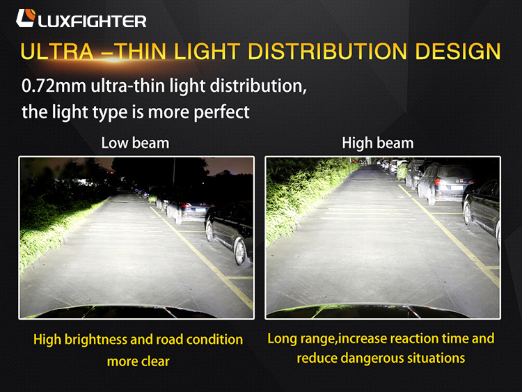 2. Chip a LED di grado automobilistico e sottile scheda PCB producono un modello di fascio migliore di raggio basso e alto.