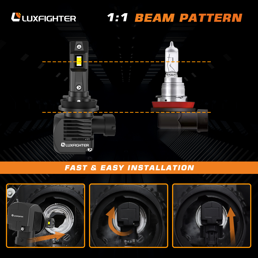 Bulbi per fari a LED 100W 8000LM Il kit di conversione a LED super luminoso è di 1: 1 come lampadine originali che possono essere perfettamente installate nell'auto senza strumenti necessari e modifiche entro 5 minuti. Dopo oltre 15 anni di esperienza in via di sviluppo e perfezionamento dei nostri progetti, sappiamo che una lampadina portatile e di installazione facile è la nuova tendenza dei fari a LED. Luxfighter che fornisce l'intera serie di fari LED plug & play per i clienti con alimentazione di lampadine che vanno da 15W a 65 W.